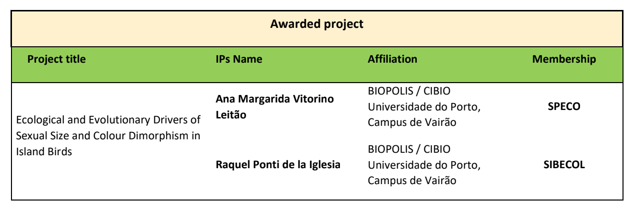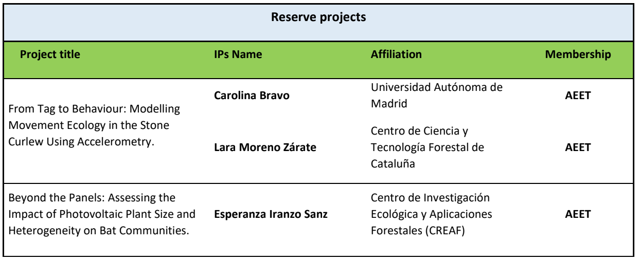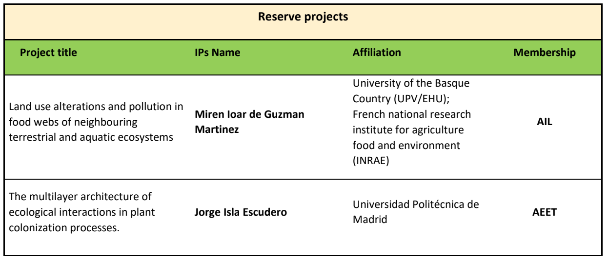 Below are the links to the resolution of the research projects in Ecology led by early career researchers, launched by AIL and AEET: