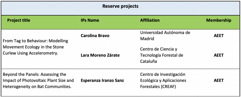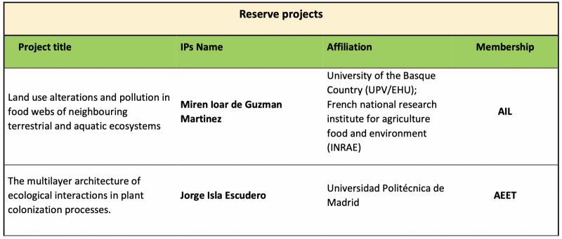 Below are the links to the resolution of the research projects in Ecology led by early career researchers, launched by AIL and AEET: